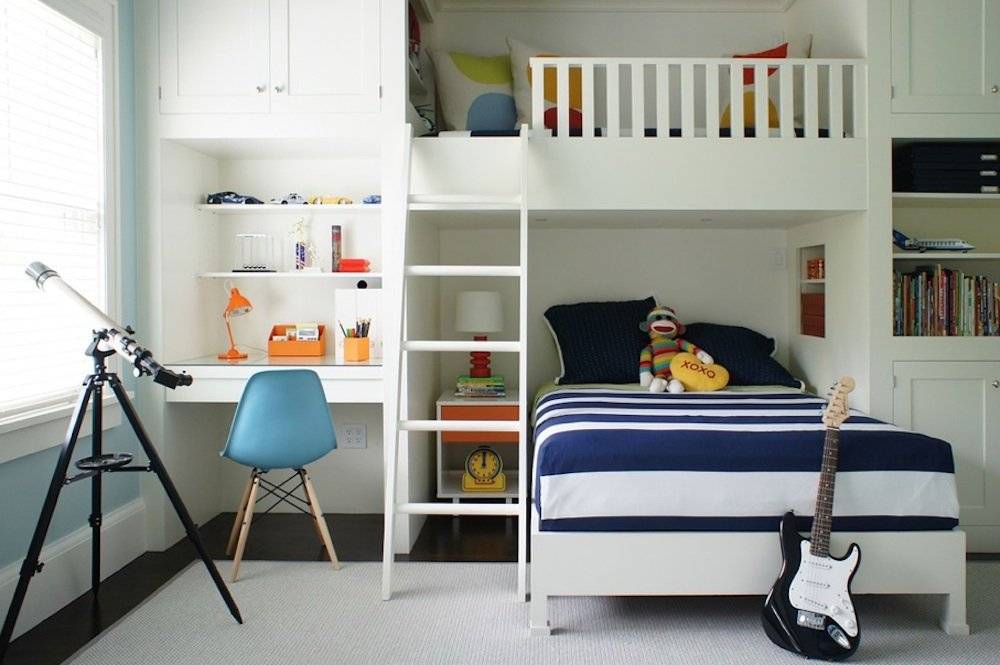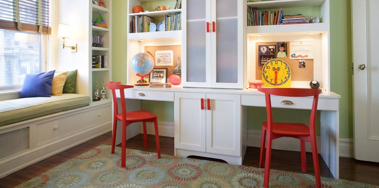 В нашей стране одну комнату часто делят два или даже три ребенка, каждому из которых необходимо собственное рабочее место. В этом случае каждый ребенок должен иметь свой уголок, где он сможет хранить учебники, выполнять уроки или просто рисовать. Если у детей будут совместные ящики — конфликтов не избежать, но два отдельных шкафчика или полки решат эту проблему.