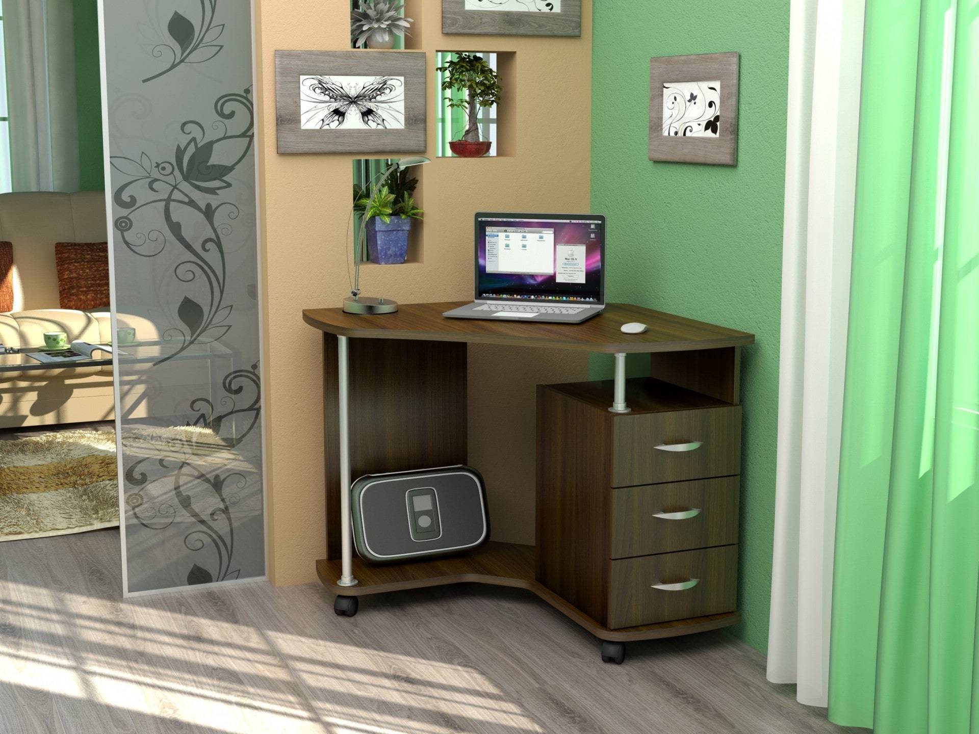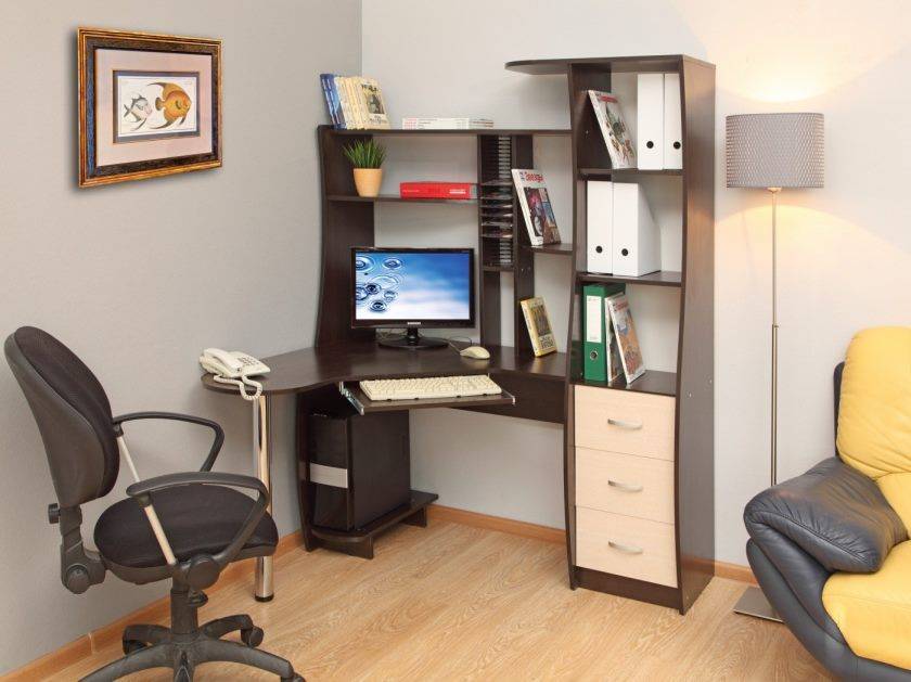 - Компактность – конструкция, установленная в углу комнаты, занимает меньше места, чем стандартные письменные или компьютерные столы.