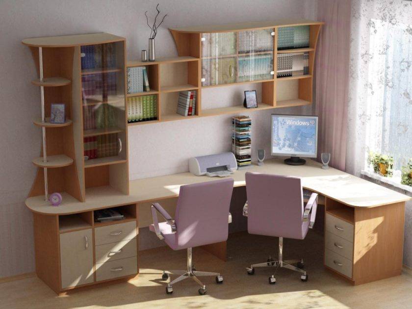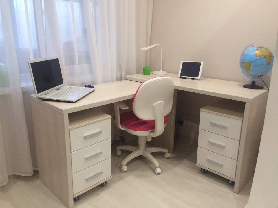 3) Для двоих детей. Всегда очень удобно и выгодно в денежном эквиваленте покупать единый угловой стол сразу для двоих детей. Даже если один ребенок еще дошкольник, а второй уже посещает школу. За большим столом удобно вдвоем и уроки делать, и заниматься творчеством (аппликация, лепка, рисование и др.). Главное – обеспечить для каждого достаточную площадь для учебы и прочих занятий. И конечно же, побеспокоиться о наличии личных полок и выдвижных ящиков.