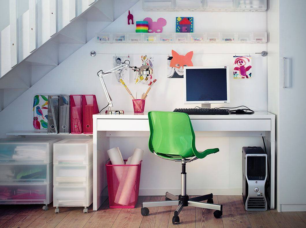 Не обязательно приобретать дорогостоящий письменный стол вдоль окна в детской, фото наглядно показывают лучшие бюджетные решения.