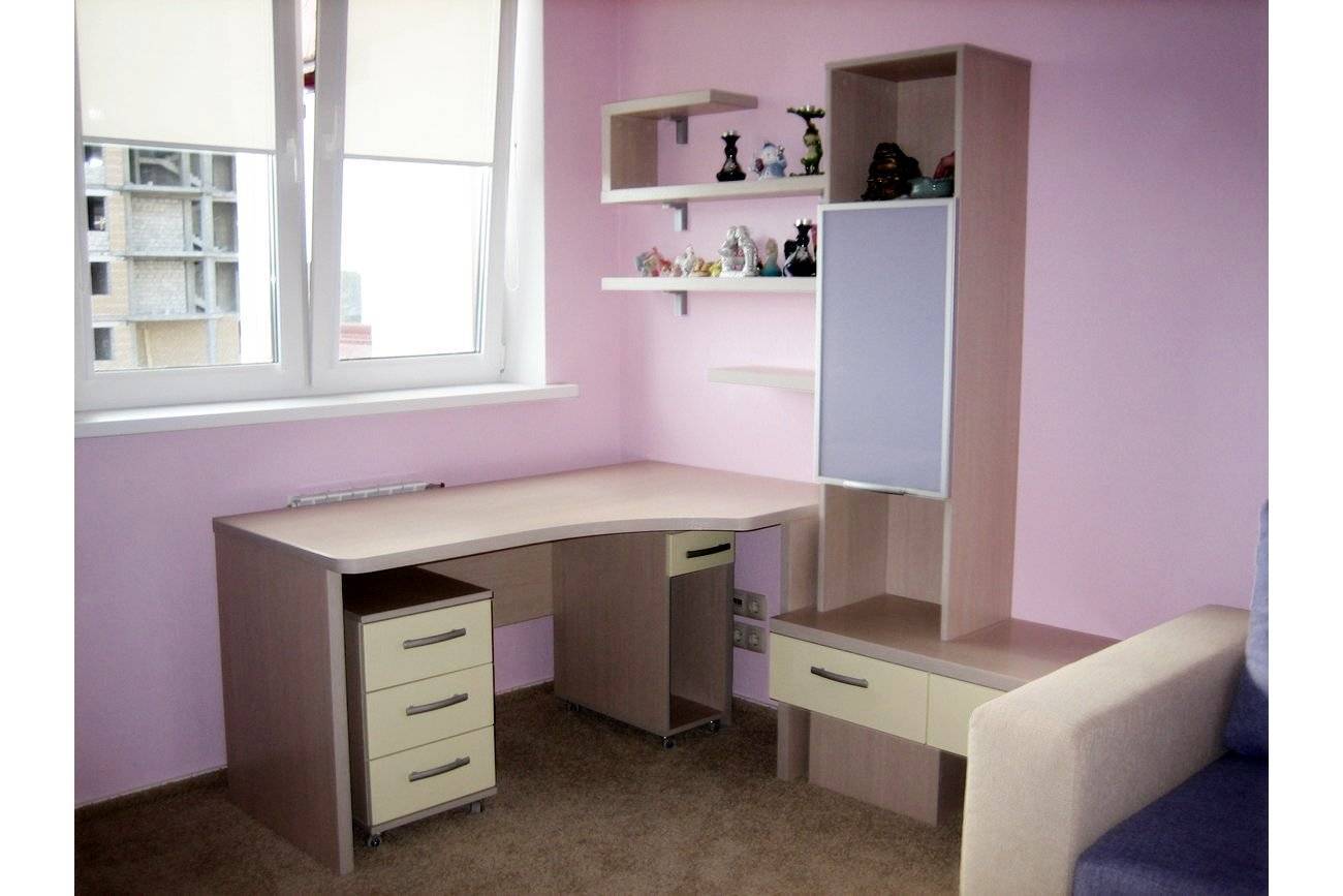 Можно собрать рабочий стол для школьника у окна, фото демонстрируют самые удачные решения.