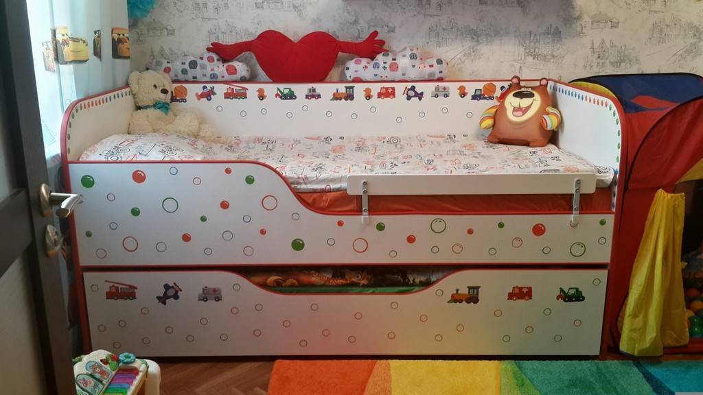 Такая кровать — это еще и вспомогательная функция в виде мини-шкафа и ящиков, в которых легко хранить постельные принадлежности и детские игрушки. Они созданы для малышей, поэтому легки в управлении. Ящики для белья, шкаф-пенал научат малышей, живущих в комнате, аккуратно и бережно обращаться со своими вещами, заботиться о чистоте игрового поля или зоны для занятий.