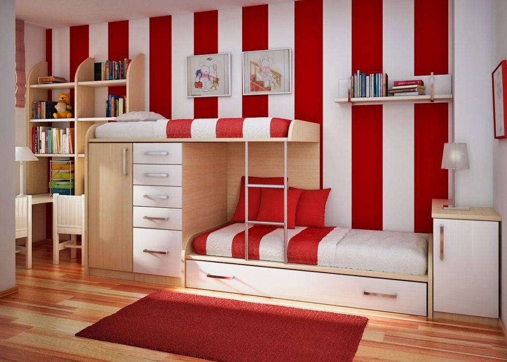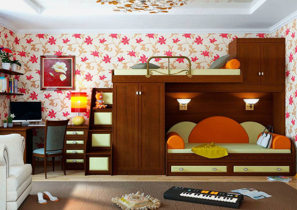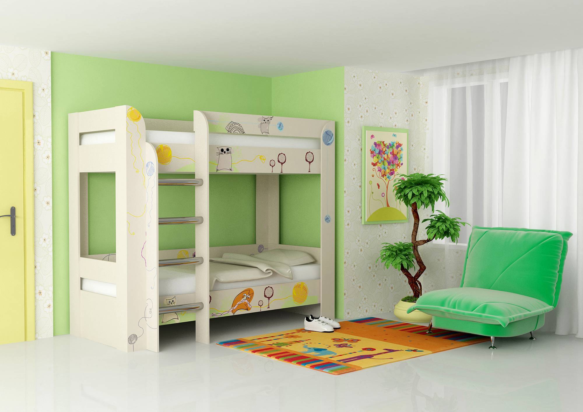Детская комната также может быть оборудована двухъярусной кроватью. Модели отличаются компактностью, различной модификацией конструкции, гармонично вписываются в дизайн. Основные преимущества изделия: