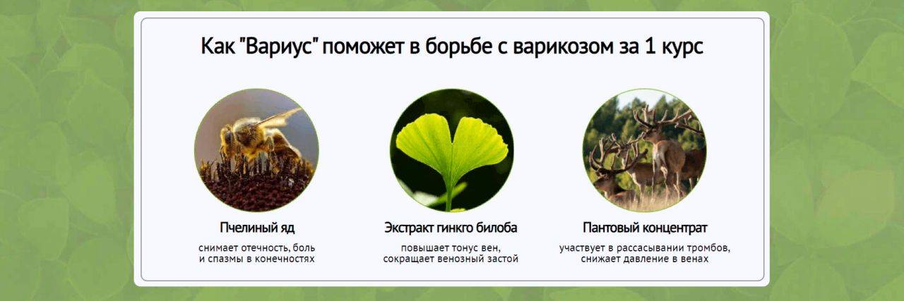 Вариус не просто маскирует симптоматику заболевания, а действует глубоко внутри устраняя саму причину патологии. Активные компоненты средства быстро проникают внутрь сосудистой стенки, поэтому оперативно приостанавливают течение патологических процессов. Согласно отзывам реальных людей, гель от варикоза Вариус позволяет быстро заметить первые положительные изменения. Врачи указывают что он купирует деформацию венозной стенки, восстанавливая функции специальных клапанов. Поэтому восстанавливается правильный ток крови по нижним конечностям.