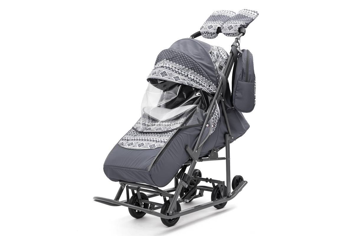 Настоящий автомобиль на дорогах детских парков. Модель считается более игровой, чем все остальные образцы, тем не менее, для транспортировки она также может быть использована. В санках нет утепляющего каркаса, однако они оснащены колесами, что может позволить использовать их и в качестве коляски для подросшего ребенка. Фиксирующие ремни гарантируют надежное размещение на сидении. Ручка агрегата перекидывается, что позволяет быстро трансформировать образец из санок в полноценную прогулочную коляску. Кроме того, грузоподъемность до 140 килограммов позволит родителю активно участвовать в зимних играх с ребенком.